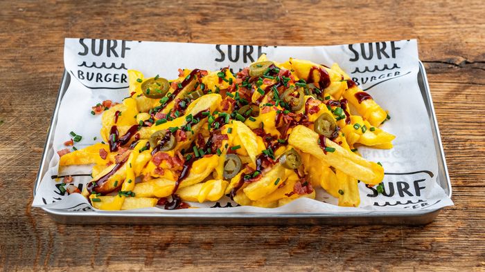 Frytki, sos serowy, bekon, szczypiorek, jalapeno